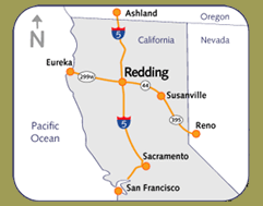 to J. Pettis Fly-Fishing Adventures and the rod bending action of Northern California. Come join us on a float trip or walk-in adventure that you will not soon forget. Have a great day out on the Lower Sacramento or Trinity Rivers with one of our patient and experienced guides. Redding, California Redding is located in Northern California, just south of Shasta Lake, nestled between the Cascades and the Trinity Alps. Its central location on I-5 in Shasta County has made it the nationally recognized marketplace of northern California, serving the adjacent counties of Tehama, Trinity and Siskiyou. With its natural beauty, abundance of recreational opportunities, and excellent quality of life, Redding successfully combines the ambiance of a small town with the amenities of a large city. Recreational visitors can enjoy outdoor activities to suit every taste, including fishing and boating on the Sacramento River as it winds through town. Reaching the city of Redding is easy. Click on the map to the left for directions. Click for Directions: Sacramento | San Francisco | Reno | Oregon >> Flying into Redding. We look forward to meeting you! |